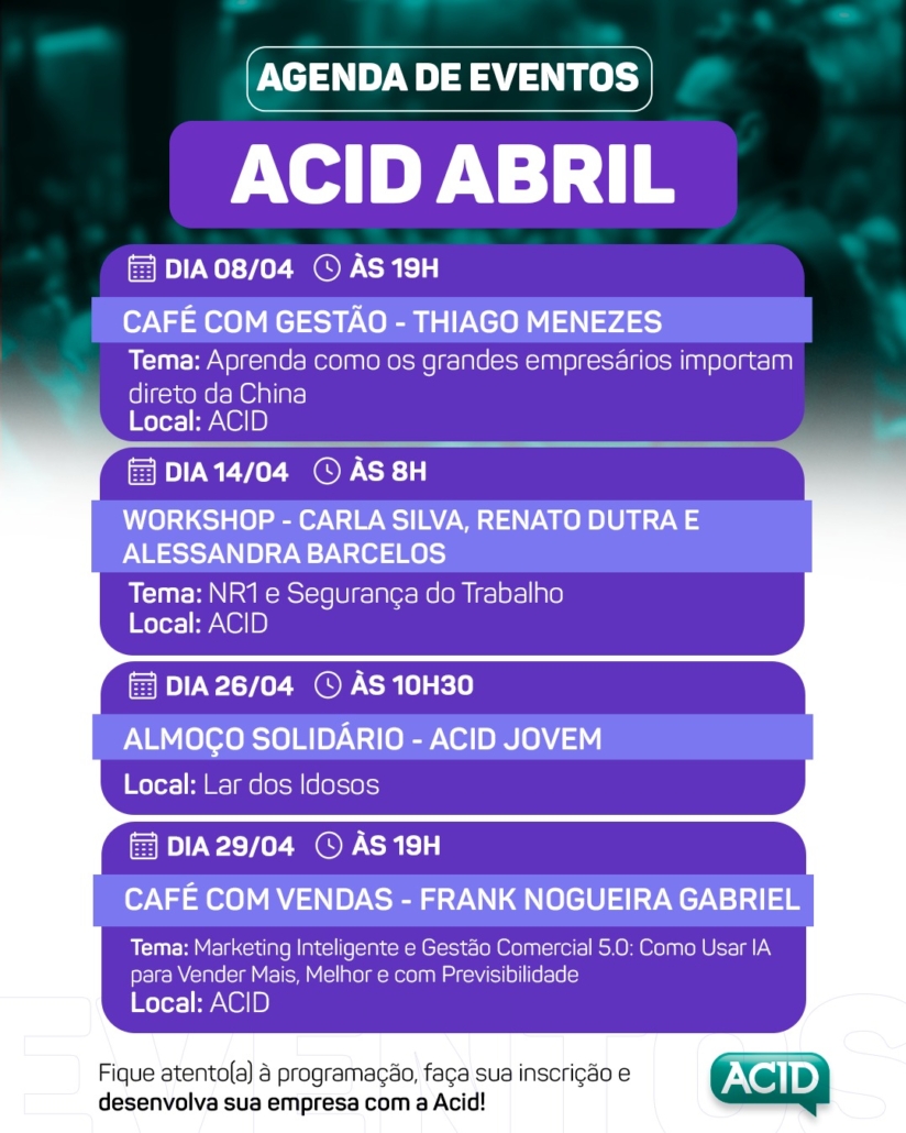 🎯Faça contato com a ACID e saiba mais sobre essa parceria de benefícios para você, associado (a).