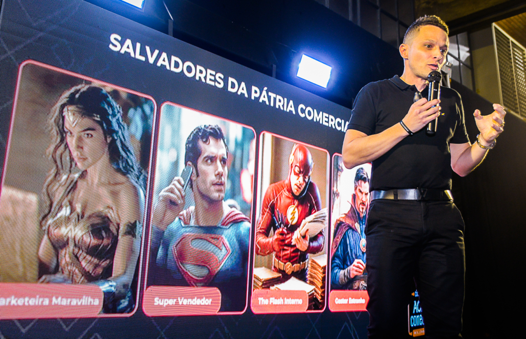 Durante sua apresentação, Caetano abordou como a Inteligência Artificial tem transformado a gestão comercial, oferecendo ferramentas e estratégias que ampliam a performance em vendas e aumentam a competitividade das empresas.