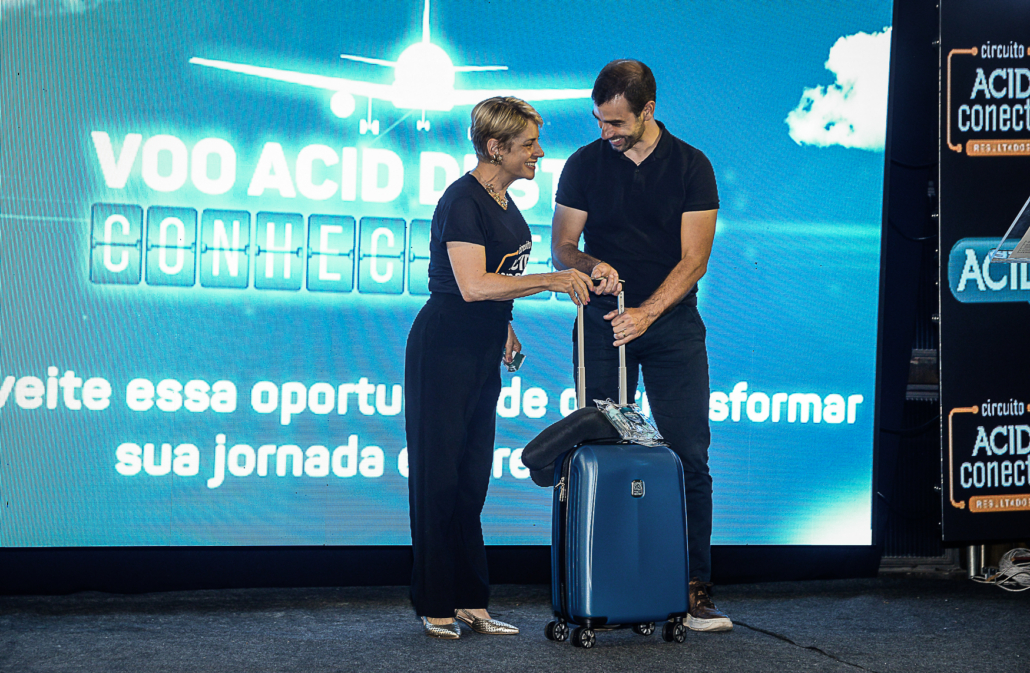 A programação da noite também contou com o sorteio de uma mala com kit viagem e almofada de pescoço, uma ação que faz parte da campanha “VOO ACID – Destino: Conhecimento”, que irá levar quatro associados para uma imersão presencial em um dos maiores eventos empresariais do Brasil, em Jaraguá do Sul – SC. A campanha segue ativa até o dia 05 de agosto, premiando os três associados que mais indicarem novas empresas para se associarem à Acid com um passaporte cada. Além disso, todas as novas empresas associadas dentro do período da Campanha, de 02 de junho a 05 de agosto, participarão do sorteio de um passaporte extra.