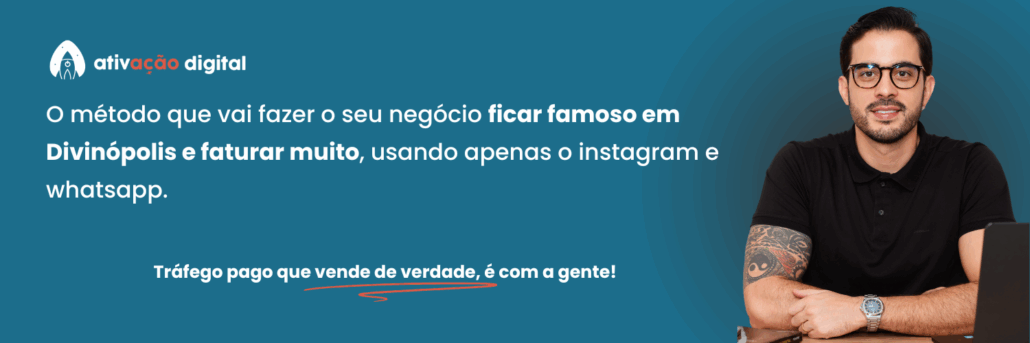 Somos a Ativação Digital, uma agência focada em tráfego pago e estratégias de vendas que realmente funcionam. Há mais de 4 anos ajudamos empresas a venderem todos os dias usando apenas Instagram, WhatsApp e campanhas bem estruturadas. Já atendemos